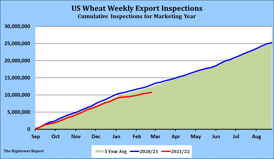 Corn futures ended lower. Some feel Fridays rally was overdone due to option expiration. Trade is worried about larger Argentina and Ukraine supplies reducing US corn export demand. Weekly US corn exports were near 30 mil bu vs 42 last year. USDA revised last week exports up 8 mil bu. Season to date exports are near 337 mil bu vs 407 last year. USDA goal is 2,500 vs 2,753 last year. Some feel USDA could lower US export but raise ethanol use in their next report and leave carryout near 1,493 mil bu. CZ is gaining on CH as first noting nears. There are no deliveries expected. Strong domestic corn basis could limit deliveries. Some feel US domestic corn users remain short and need corn for use. USDA estimates World corn trade near 203 mmt vs 176 last year. US 63 vs 70, Brazil 43 vs 17, Argentina 39 vs 38 and Ukraine 31 vs 23. 2021/22 World con end stocks 304 mmt vs 291 ly with China 210 mmt of the total.