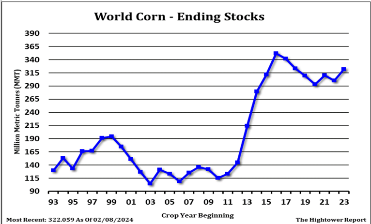 CH is near 4.18. Futures remain oversold. Managed funds near record short corn futures. Some are worried about Brazil monsoon ending and could stress Brazil 2nd crop. One crop watcher estimates Brazil corn crop at 112 mmt vs USDA 124. Brazil est 2nd crop plantings near 59 pct. Indonesia is tendering for corn due to high domestic prices. Black Sea and EU corn prices continues to drop. Most of US Midwest is warm and dry. Dry rest of Feb could raise talk of drier US summer. Cash US corn prices near or below farmer breakeven.